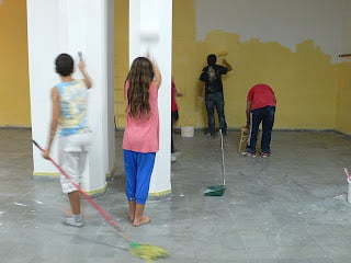 Una docena de niños y niñas de la parroquia realizaron labores de limpieza, preparación y pintura de la Sala parroquial situada en el subsuelo de la Iglesia de la Asunción.