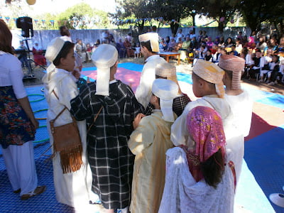 A la puerta, una niña ataviada con traje de flamenca, esparcía pétalos de rosa a los pies de las hermanas, y otras dos chicas, vestidas con unos kaftanes de bordados esplendorosos, las recibían con un pequeño vaso de leche y dulces típicos marroquís en señal de bienvenida. Entraron al salón por un camino alfombrado entre numerosos flashes, tanto de la prensa como de los propios asistentes que querían inmortalizar la presencia de las hermanas, mientras salían espontáneamente a su paso niños, jóvenes y mayores, todos queriendo estrechar sus manos a las hermanas. No cesaban los aplausos que formaban parte de la brillante música que una orquesta marroquí hacía sonar con ritmo de fiesta contagiosa.