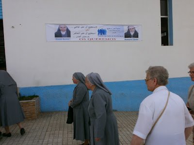 El homenaje se hizo en las personas de las hermanas adoratrices Encarnación Iglesias y Rosario Barroso, aunque se hizo extensivo a todas las adoratrices que por esa casa han pasado, a toda la Congregación que permite esta impagable presencia en nuestra Diócesis, y en general a todas las entidades católicas de Marruecos que, como dijo generosamente la hna. Encarnación en su sencillo discurso, “todas ellas han hecho y hacen también una gran labor humanitaria en este país”. Agradeció así mismo al pueblo de F’nideq (Castillejos), con voz emocionada, por haberlas acogido siempre con afecto y reconocimiento por lo que hacen, y también por lo que son, monjas católicas.